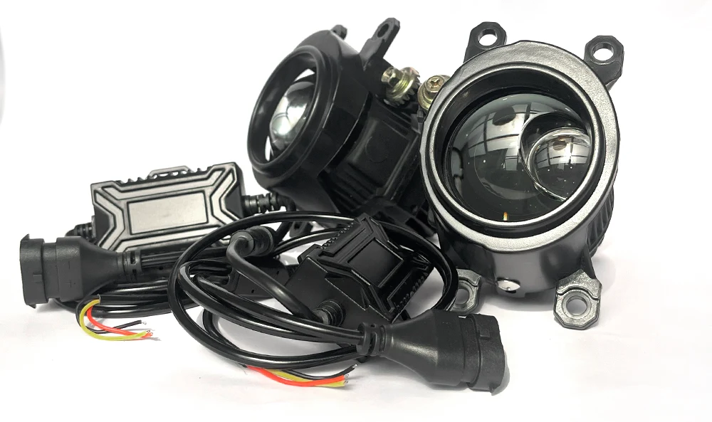 • 2 düymlük lens yüksək parlaqlıq LED 3 işıqlı 3 rəngli duman işıqları2 düymlük lens yüksək parlaqlıq LED 3 işıqlı 3 rəngli duman işıqları
